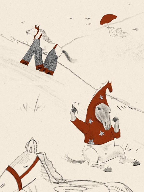 动画讲述了一匹渴望成为“高头骏马”的骡子。它穿越荒漠与高山,在途中遇见许多看似“被命运眷顾”的骏马,它们以更“轻松”的方式去往远方。面对差异,骡子一度产生困惑与动摇,最终选择纵身一跃脱掉骏马的“伪装”,以自己的方式朝着下一个目的地前进。